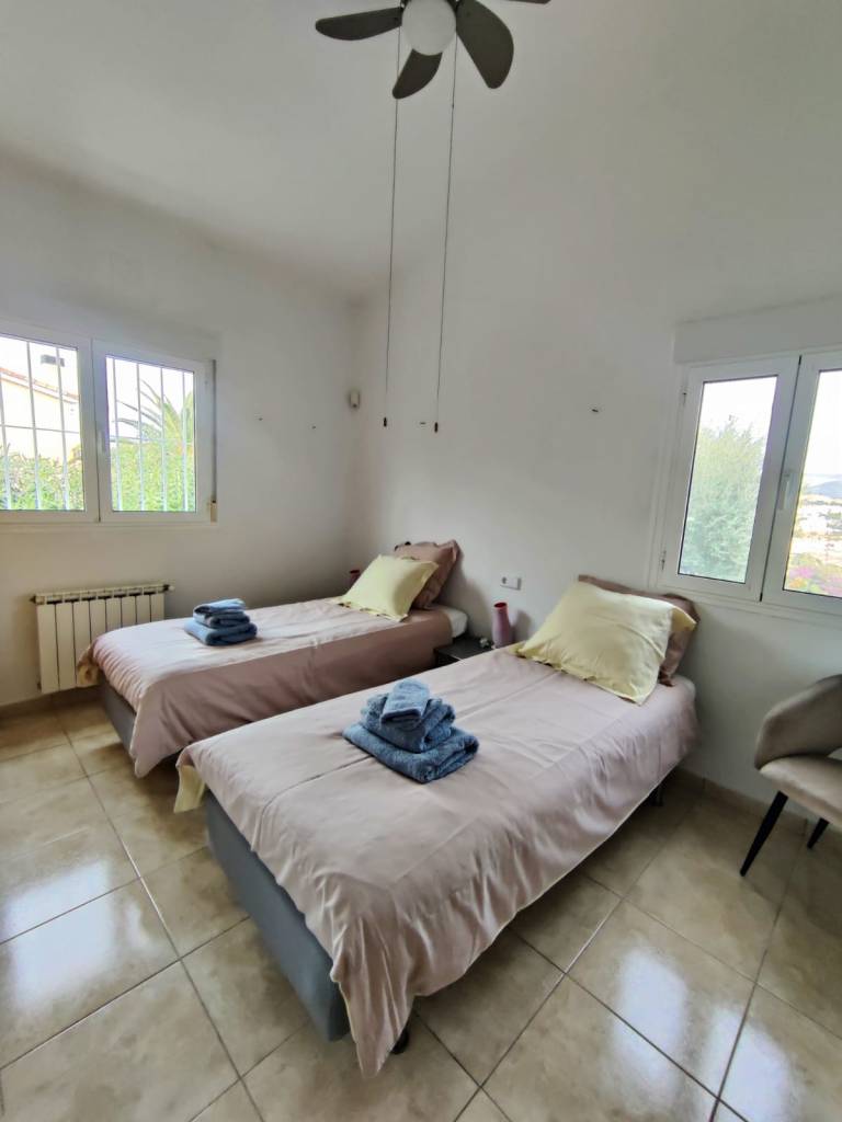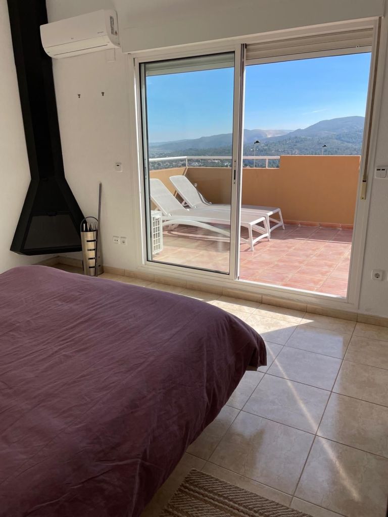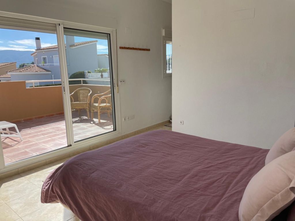 Op de derde verdieping bevindt zich de master bedroom met een tweepersoonsbed, dressing en badkamer ensuite met ligbad en douche lavabo en apart toilet en een ruim zonneterras met een prachtig uitzicht op de Montgo en de Middellandse Zee.